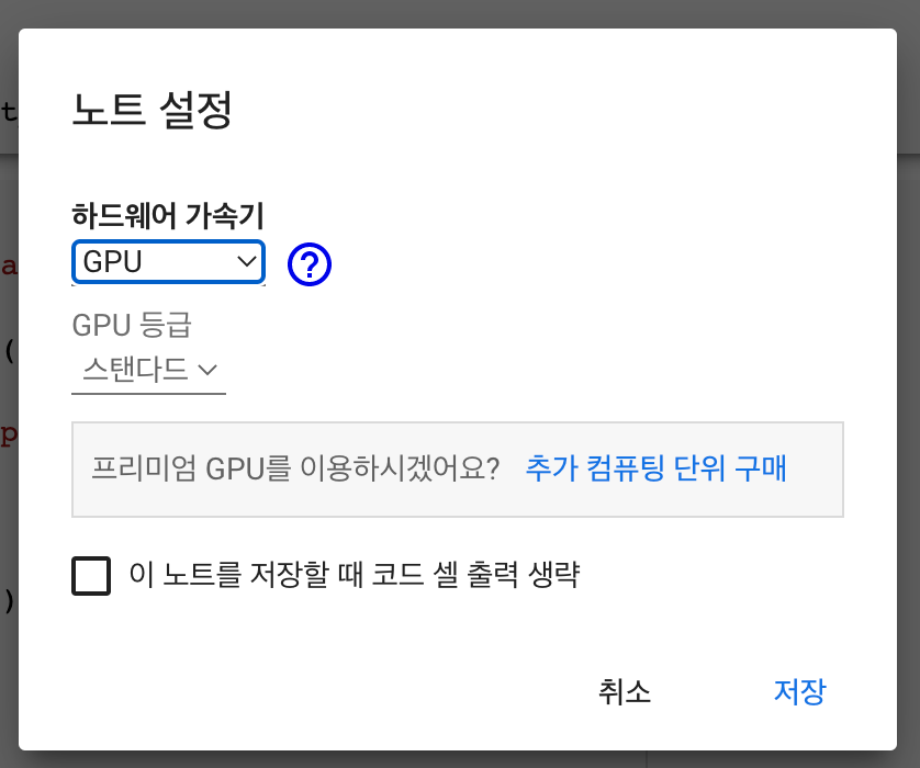 파일을 하나 만들고 메뉴에서 런타임 -> 런타임 유형 변경을 하고 GPU로 변경해줍니다.