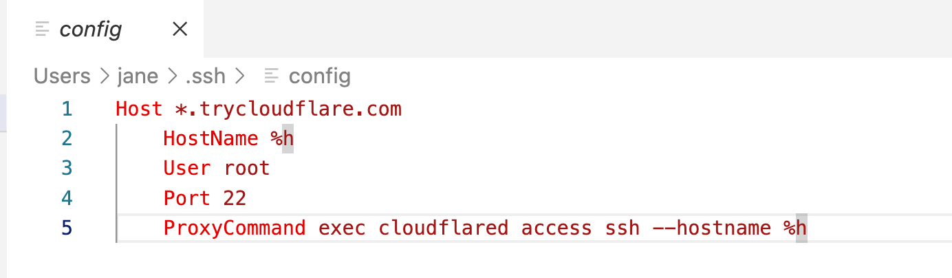 ProxyCommand exec cloudflared access ssh --hostname %h
