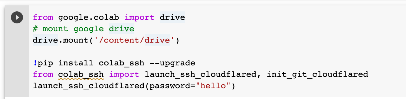 클라우드와 연동해서 사용하지 않는분은 !pip install colab_ssh --upgrade 부분부터 입력해주세요.